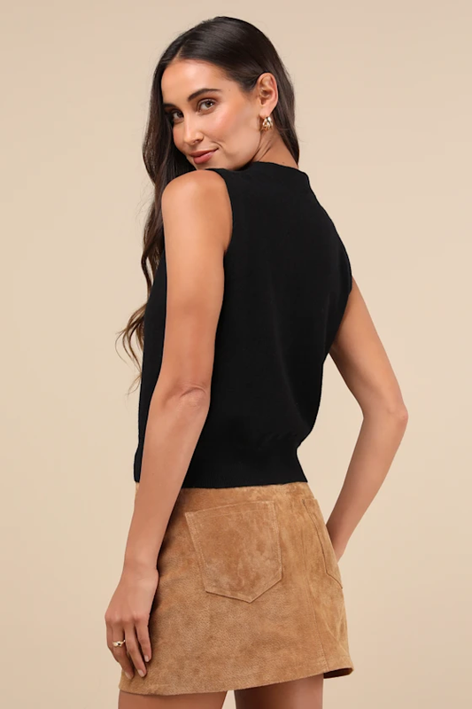 Eira Black Button-Front V-Neck Sweater Vest