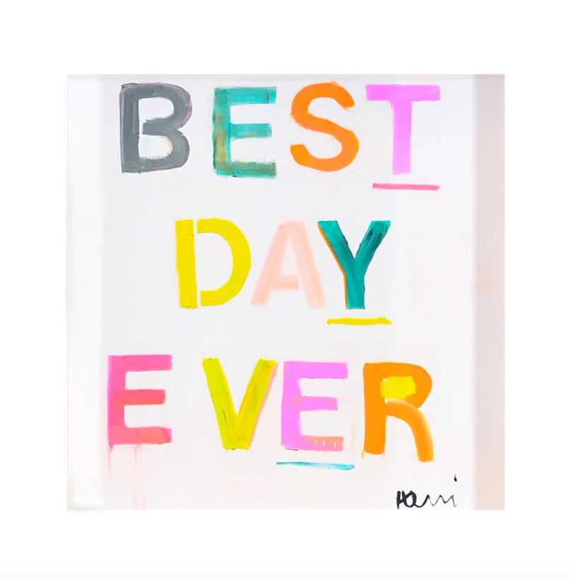 Blocks of Love are signed, mini editions of Kerri Rosenthal's artwork mounted on 3/4" plexiglass. Kerri uses them to style a coffee table, night stand or book shelf. She gives them as gifts to friends and sets one on each plate at her dinner parties.