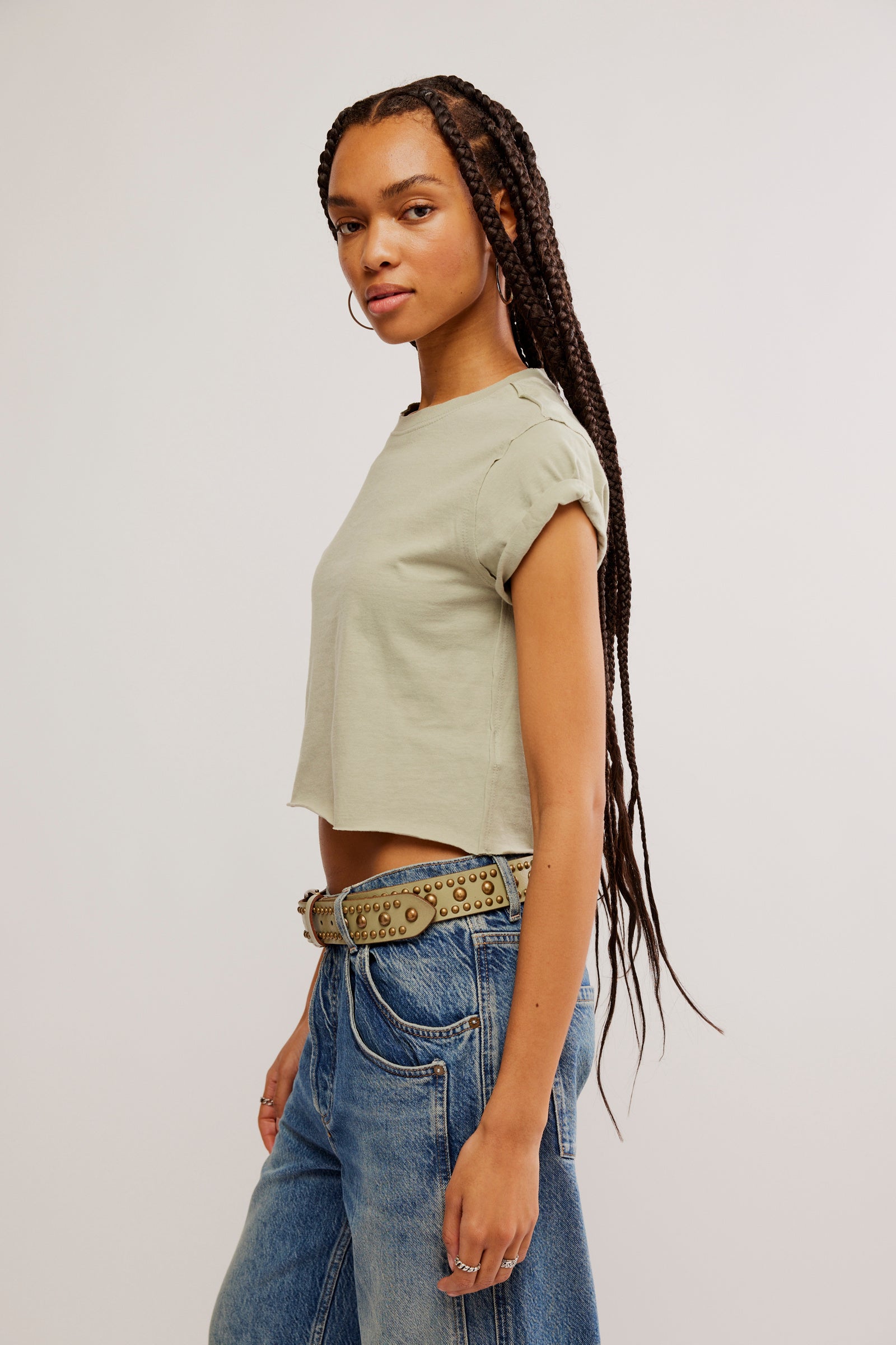 - Cuffed short sleeves